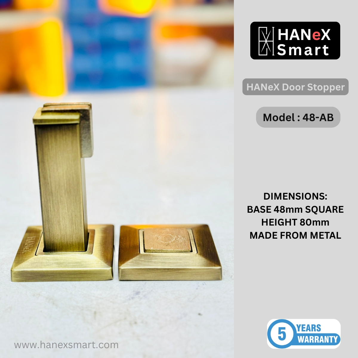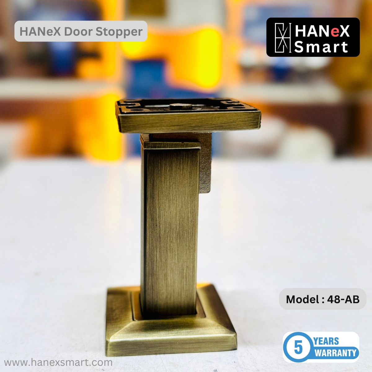 Stopper 48 AB is a premium metal door stopper with an elegant antique brass finish and a solid square base design. It effectively prevents doors from hitting walls, protecting surfaces from damage while adding a stylish touch to any interior. Suitable for homes, offices, hotels, and commercial spaces, this durable and easy-to-install door stopper ensures long-lasting performance with minimal maintenance.