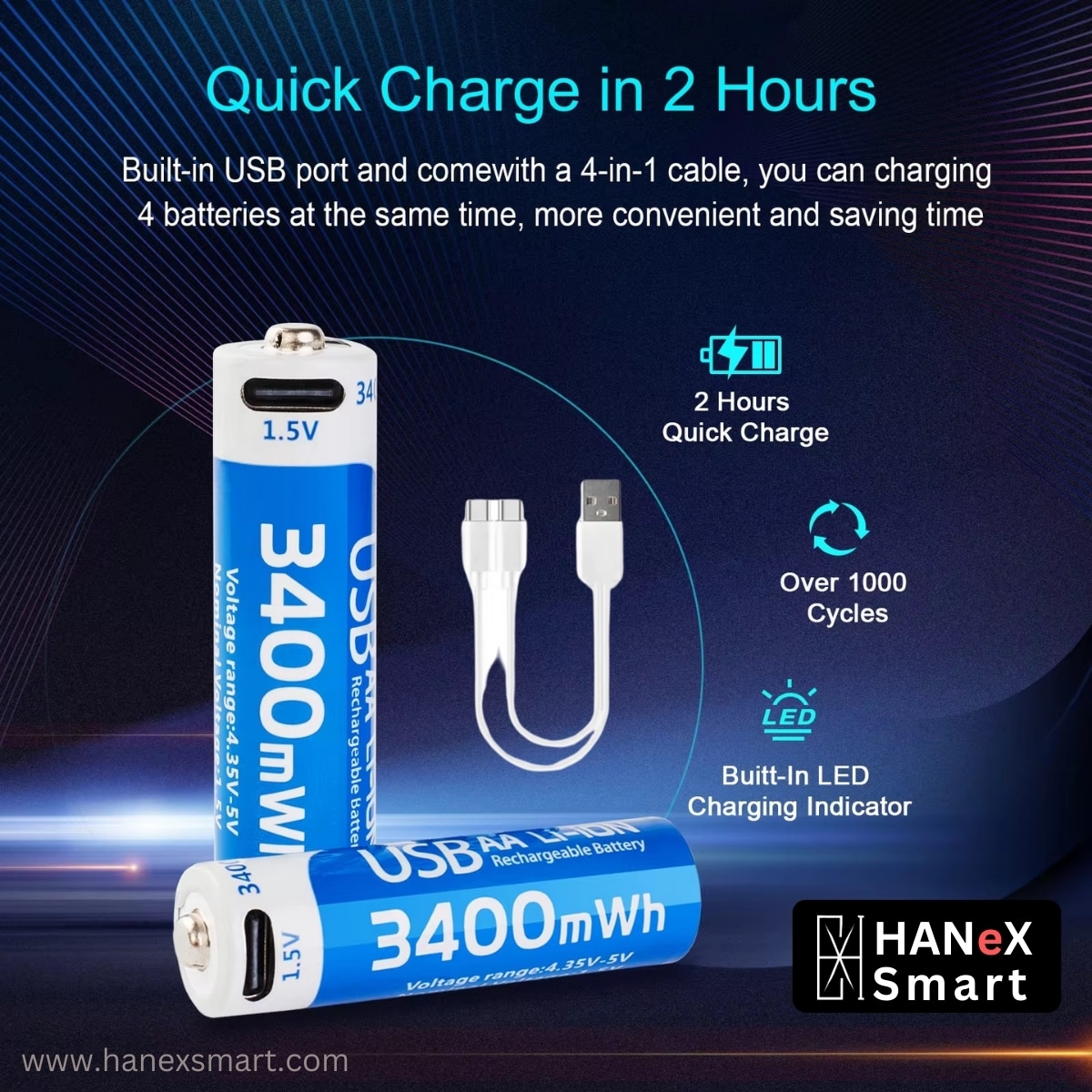 HANeX AA 2 Pcs Rechargeable Battery – 3400 mWh