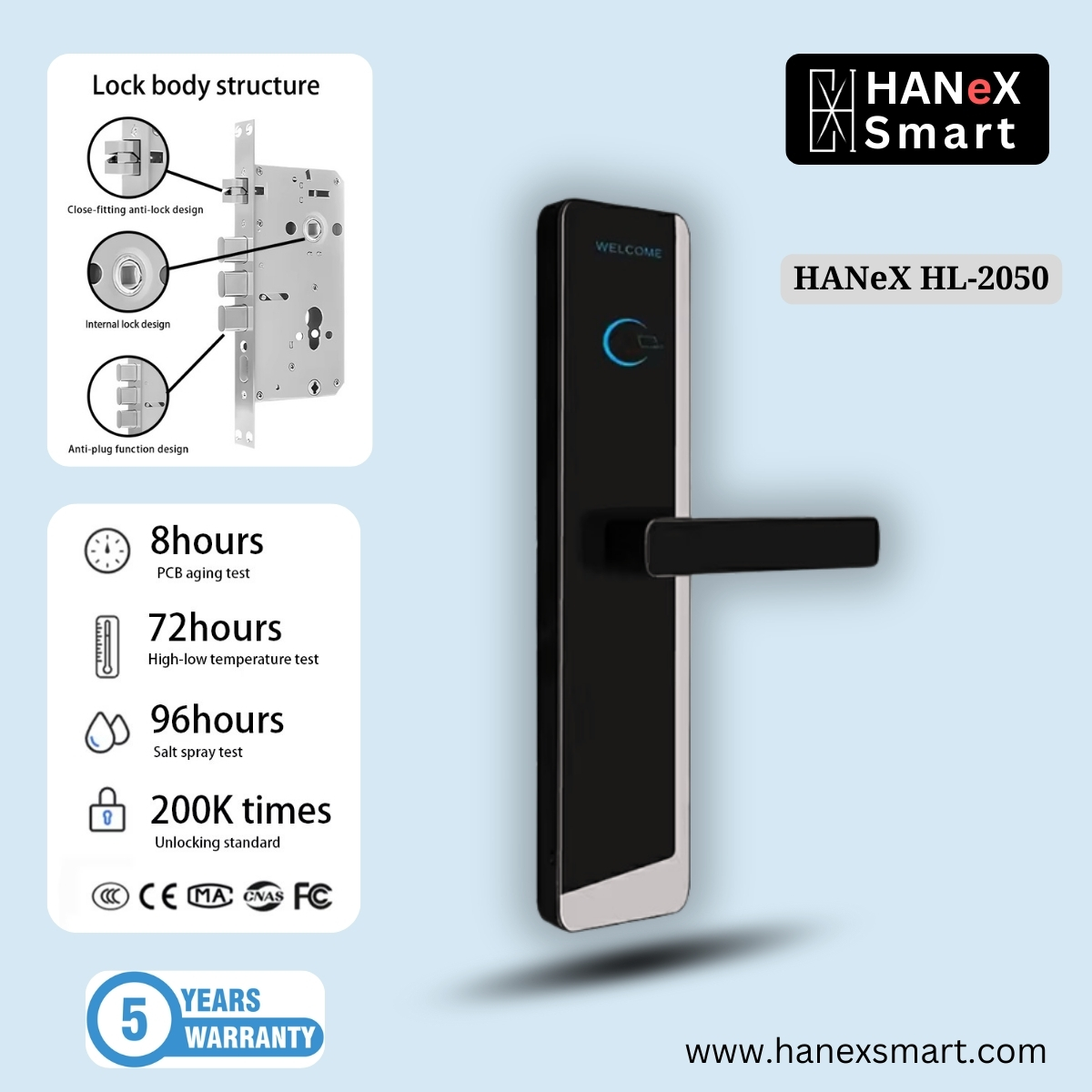সব মিলিয়ে, Hanex Hotel Lock HL-2050 আপনার হোটেল ব্যবসাকে আরও নিরাপদ, আধুনিক এবং প্রফেশনাল করে তুলবে—যা অতিথিদের আস্থা ও সন্তুষ্টি দুটোই বাড়াবে।