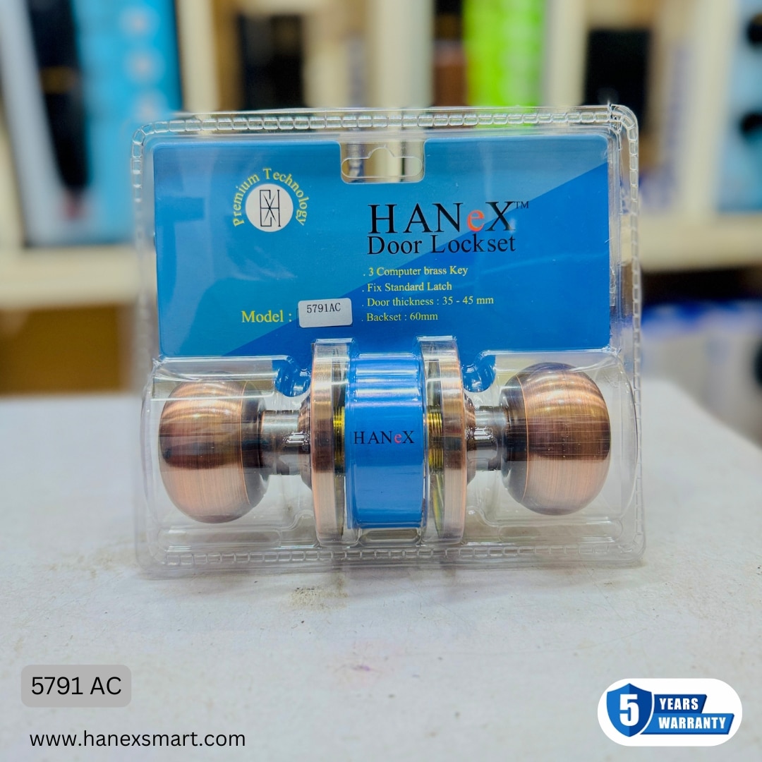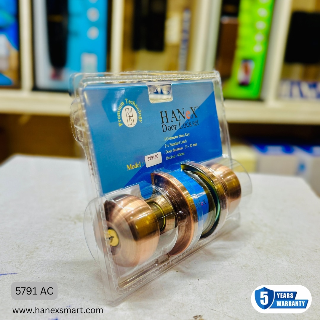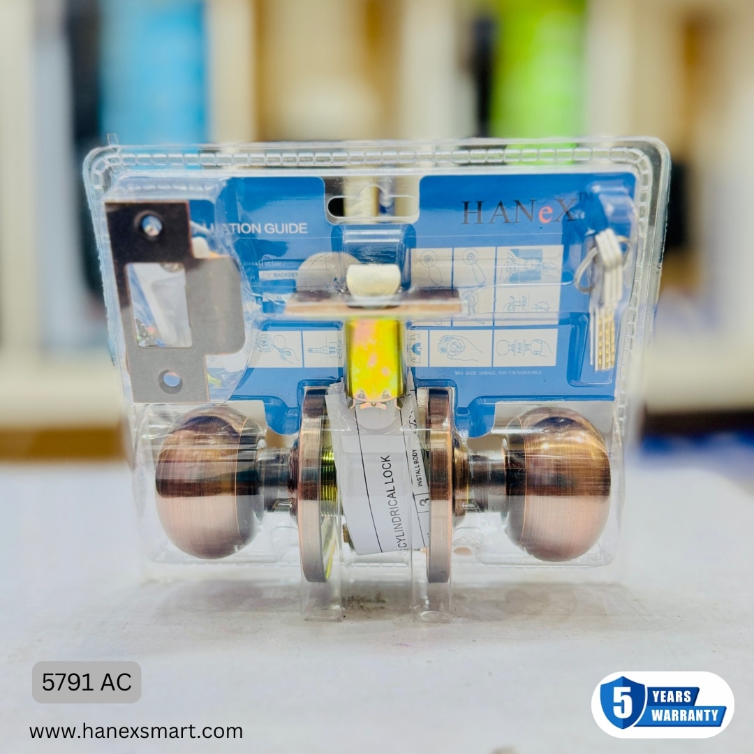 The Hanex Smart brand is well-known for manufacturing durable, premium-quality, and security-enhanced hardware products. Continuing that tradition, we proudly present the Hanex Door Lockset – Model 5791-AC. It is crafted for customers who value strong protection, smooth functionality, stylish appearance, and long-lasting durability in both home and commercial environments.